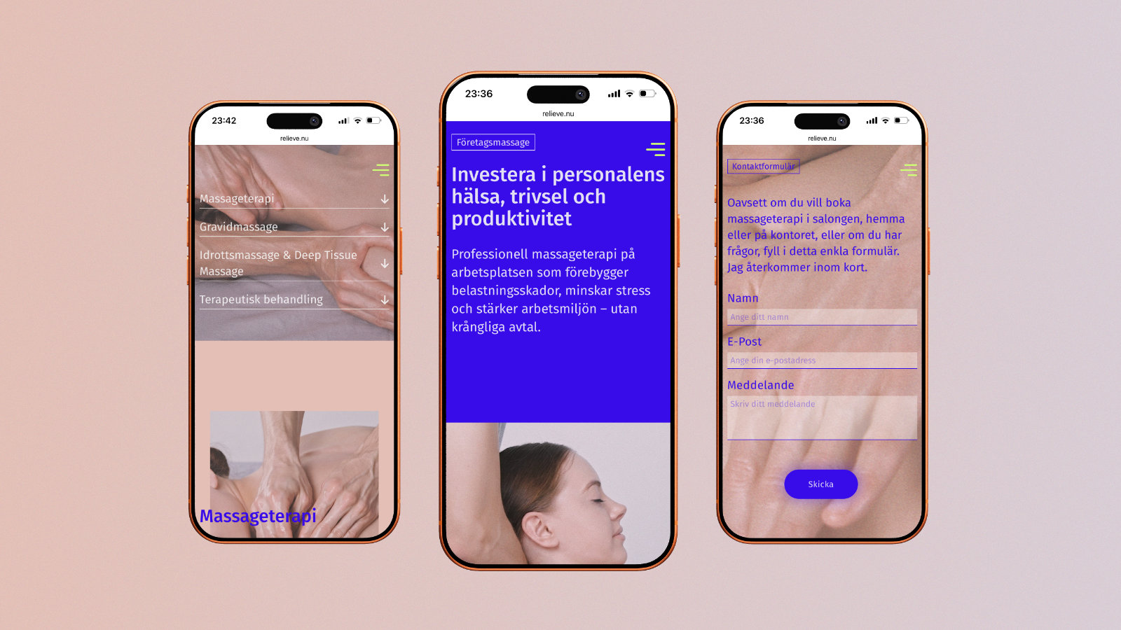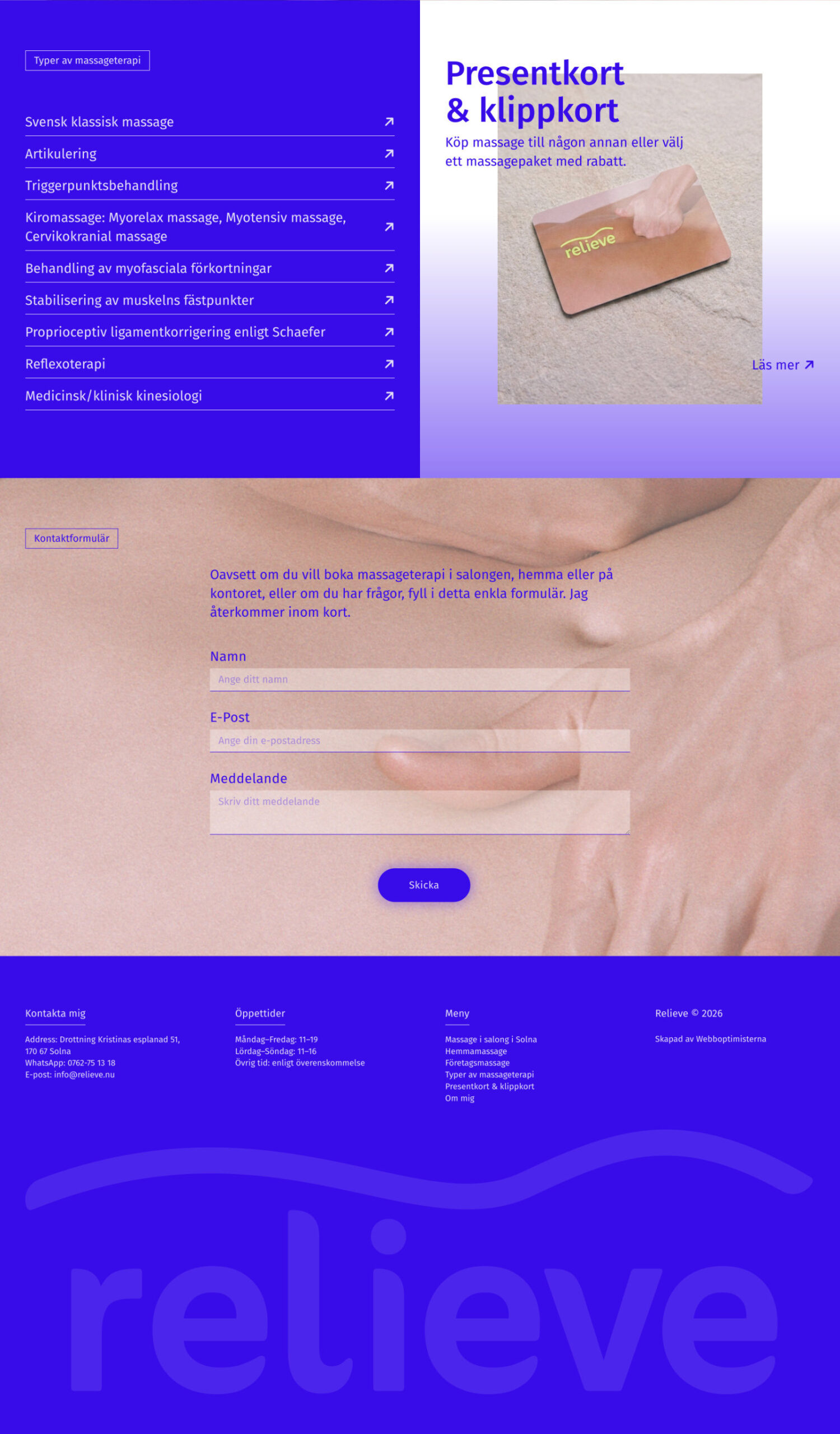 Webbplats och visuell identitet för Relieve massage terapi